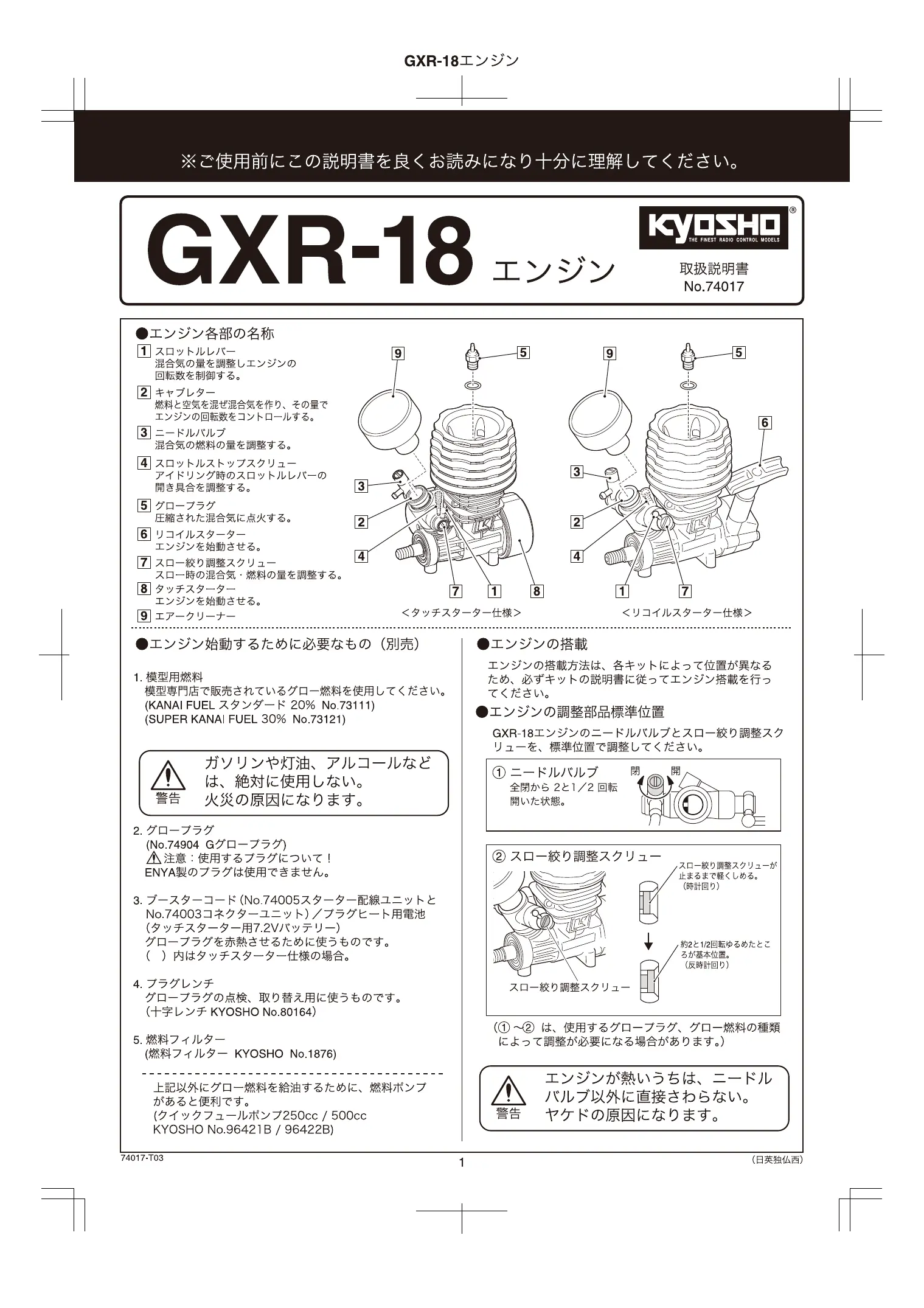 GXR-18 - Moteur de modélisme KYOSHO - Notice d'utilisation et mode d'emploi gratuit