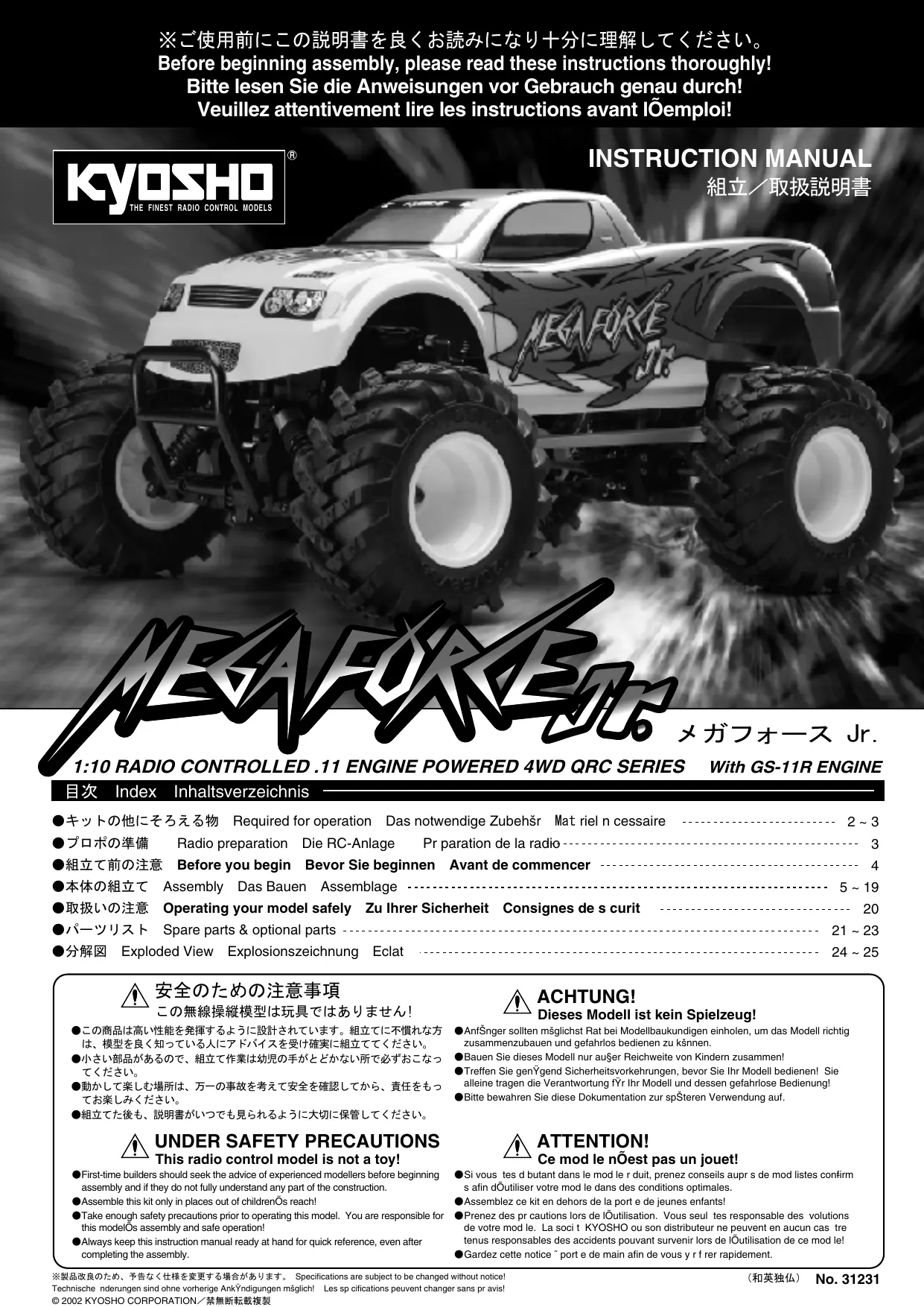 MEGA FORCE JR - Modèle réduit de véhicule tout terrain KYOSHO - Notice d'utilisation et mode d'emploi gratuit