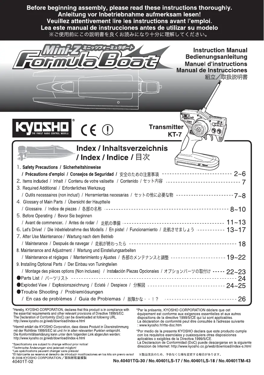 Retrouvez gratuitement la notice de l'appareil MINI-Z FORMULA BOAT KYOSHO au format PDF.