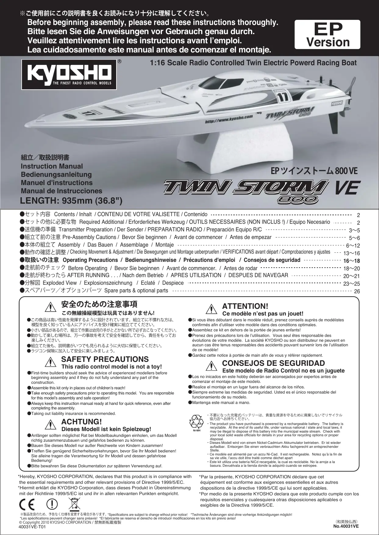 Retrouvez gratuitement la notice de l'appareil TWIN STORM 800 VE KYOSHO au format PDF.