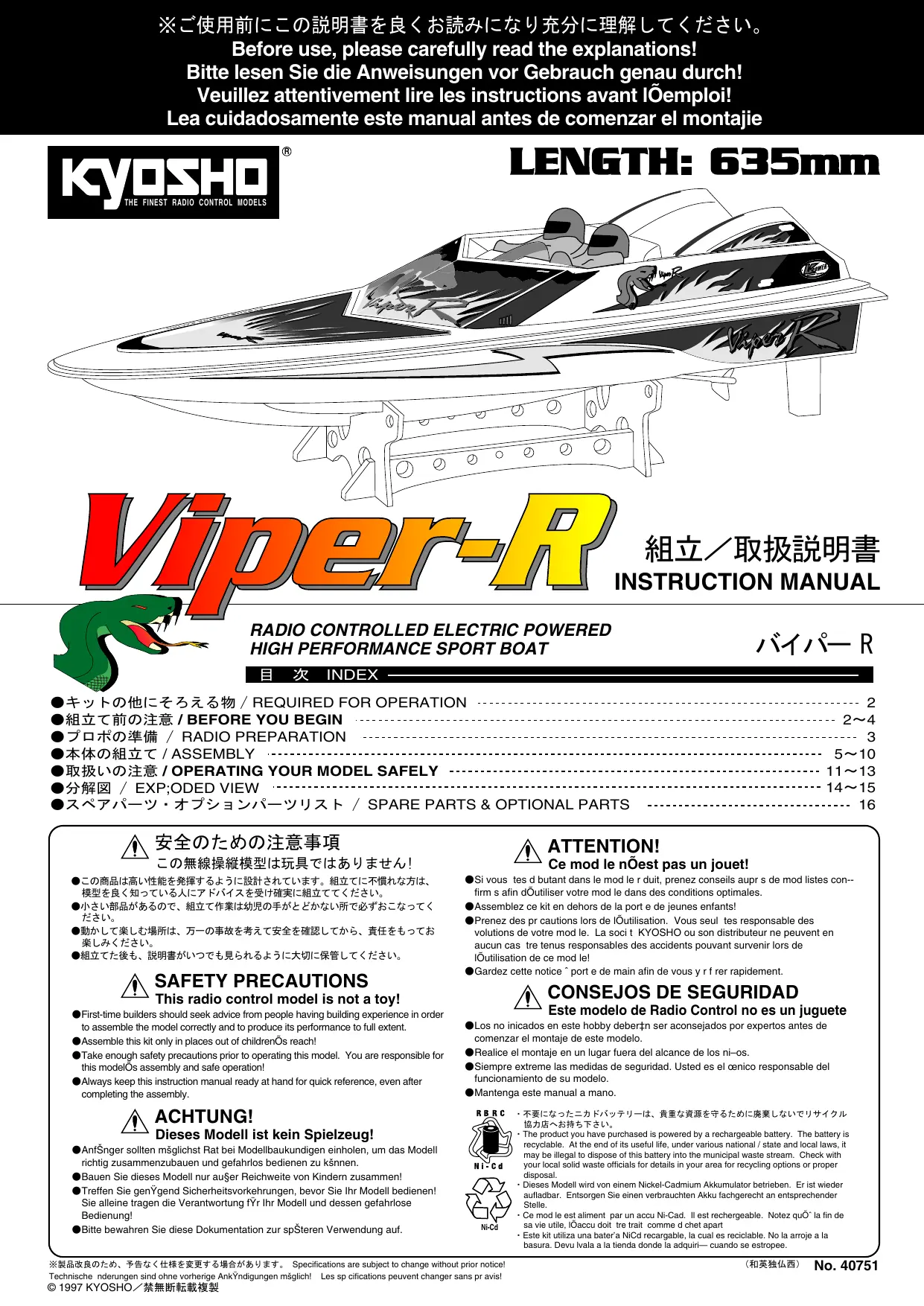 VIPER R - Bateau radiocommandé KYOSHO - Notice d'utilisation et mode d'emploi gratuit