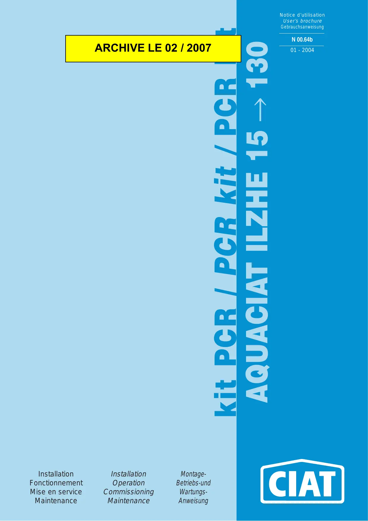 MODE D'EMPLOI AQUA ILZHE 15 CIAT