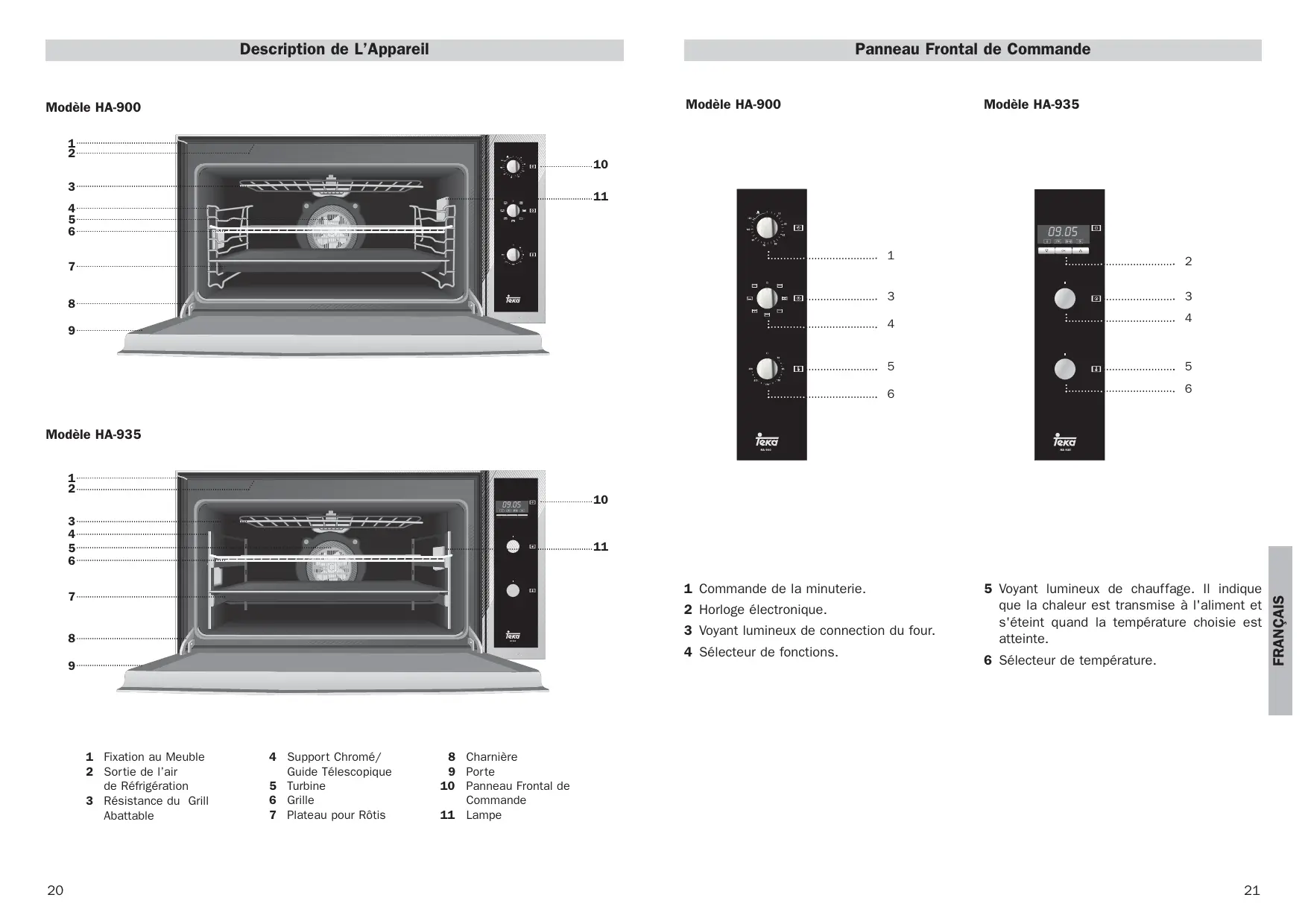 Description de L’Appareil Panneau Frontal de Commande Modèle HA-900 Modèle HA-900 Modèle HA-935