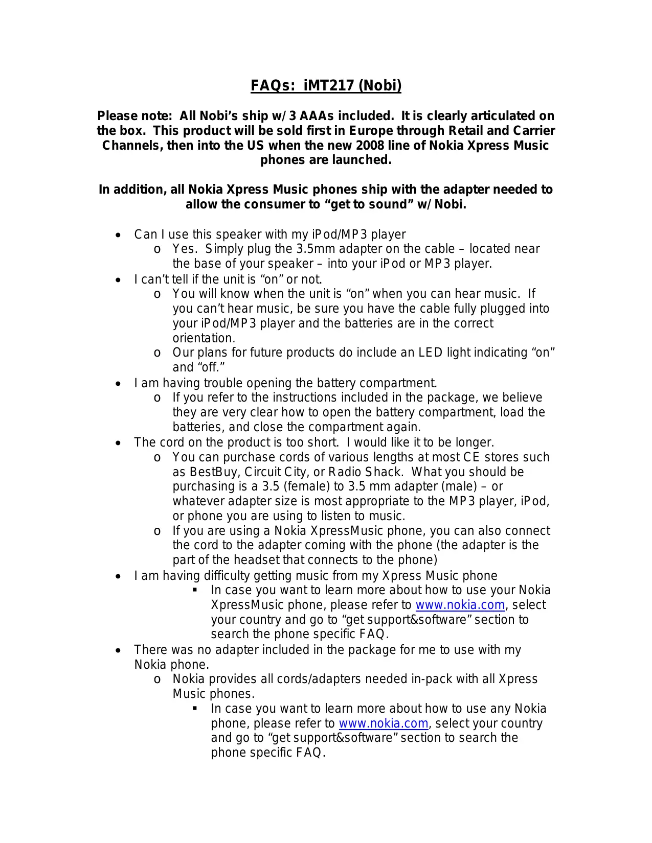 FOIRE AUX QUESTIONS - INMOTION IMT217 ALTEC LANSING