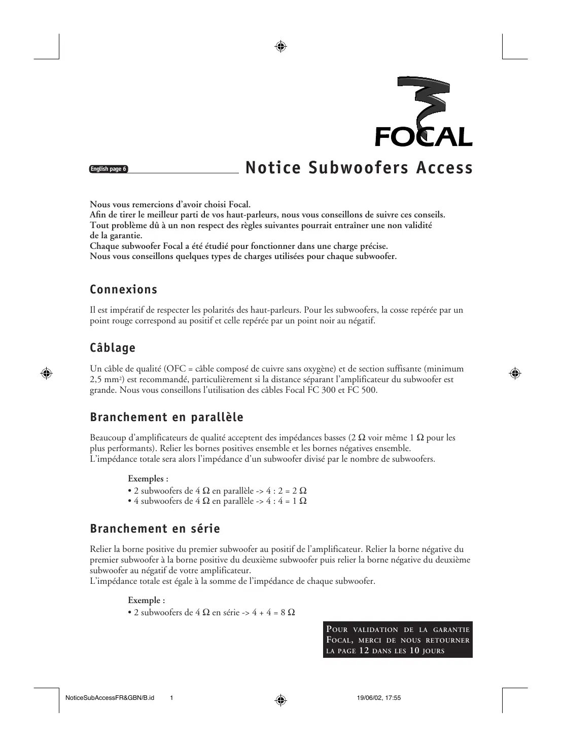Retrouvez gratuitement la notice de l'appareil SUBWOOFER ACCESS FOCAL au format PDF.