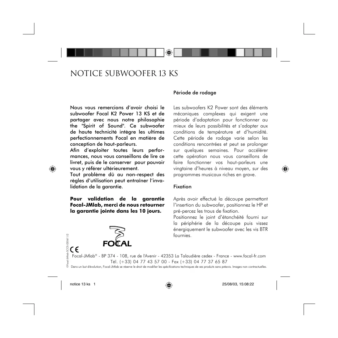 MODE D'EMPLOI SUBWOOFER K2 POWER 13 KS FOCAL