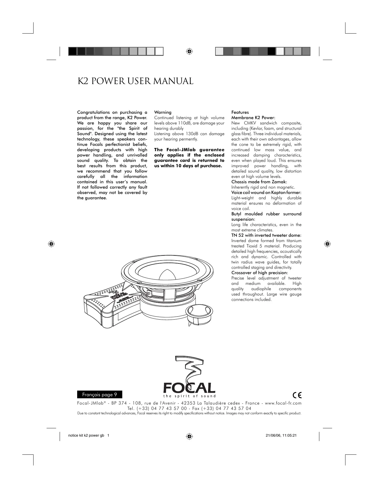 K2 POWER - Haut-parleurs automobile FOCAL - Notice d'utilisation et mode d'emploi gratuit