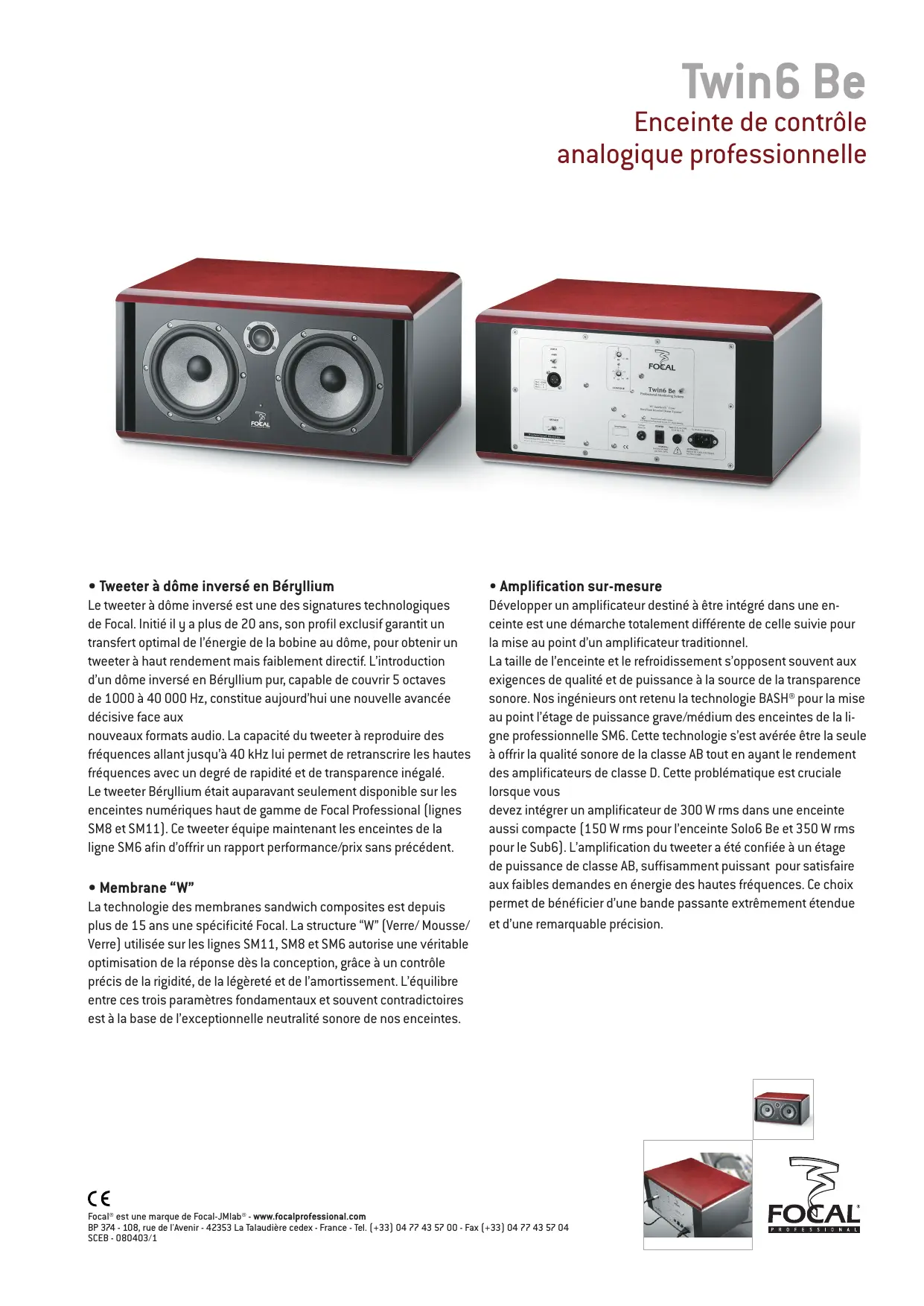 TWIN6 BE - Enceinte de studio FOCAL - Notice d'utilisation et mode d'emploi gratuit