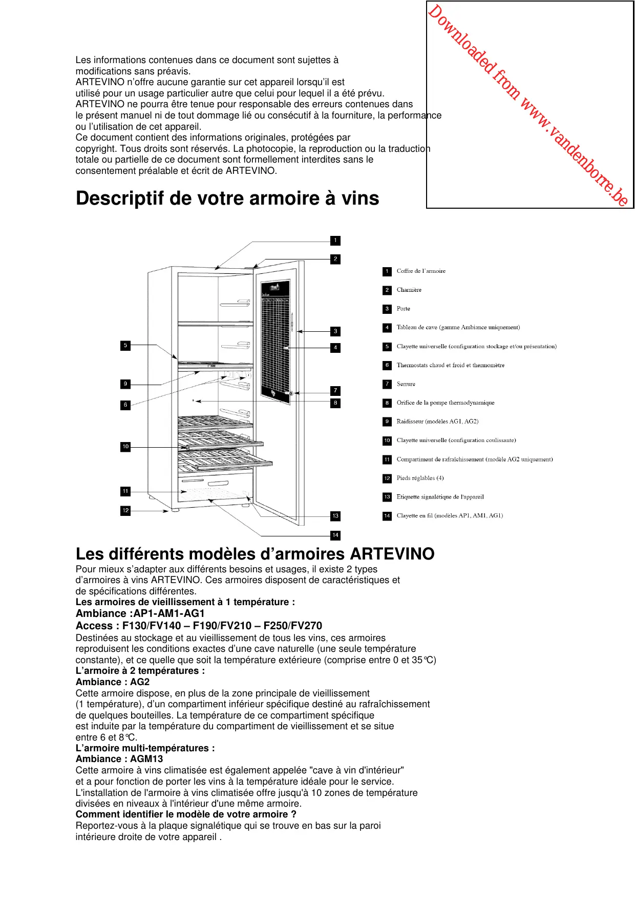 AM1 - Cave à vin ARTEVINO - Notice d'utilisation et mode d'emploi gratuit