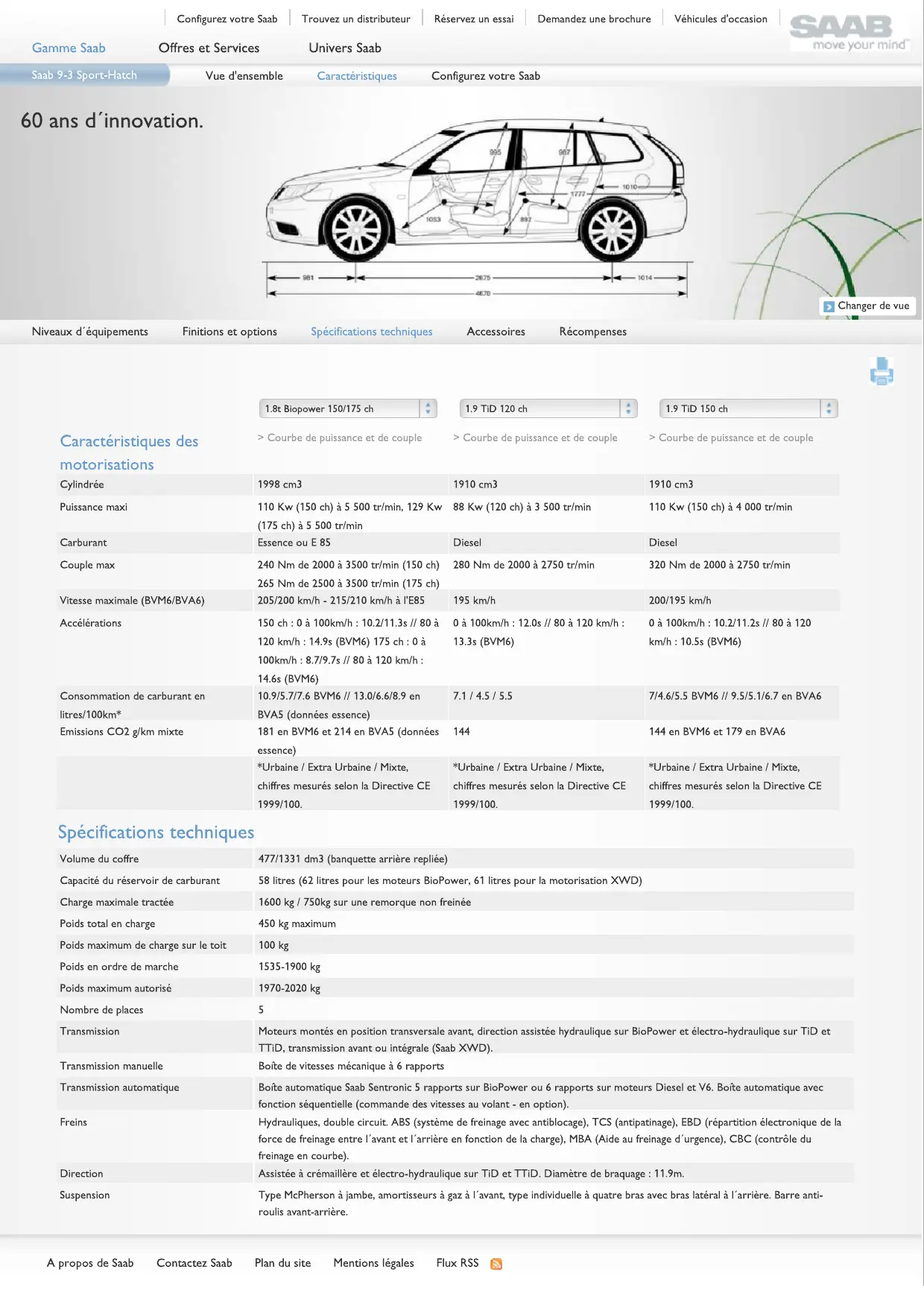 | Capacité du réservoir de carburant | 58 litres (62 litres pour les moteurs BioPower, 61 litres pour la motorisation XWD) |