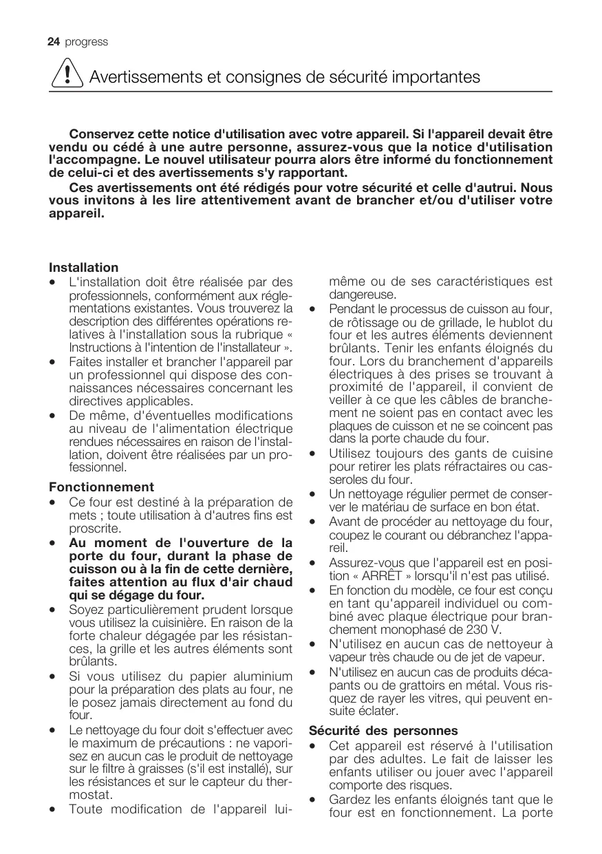 PBN1110X - Four encastrable PROGRESS - Notice d'utilisation et mode d'emploi gratuit
