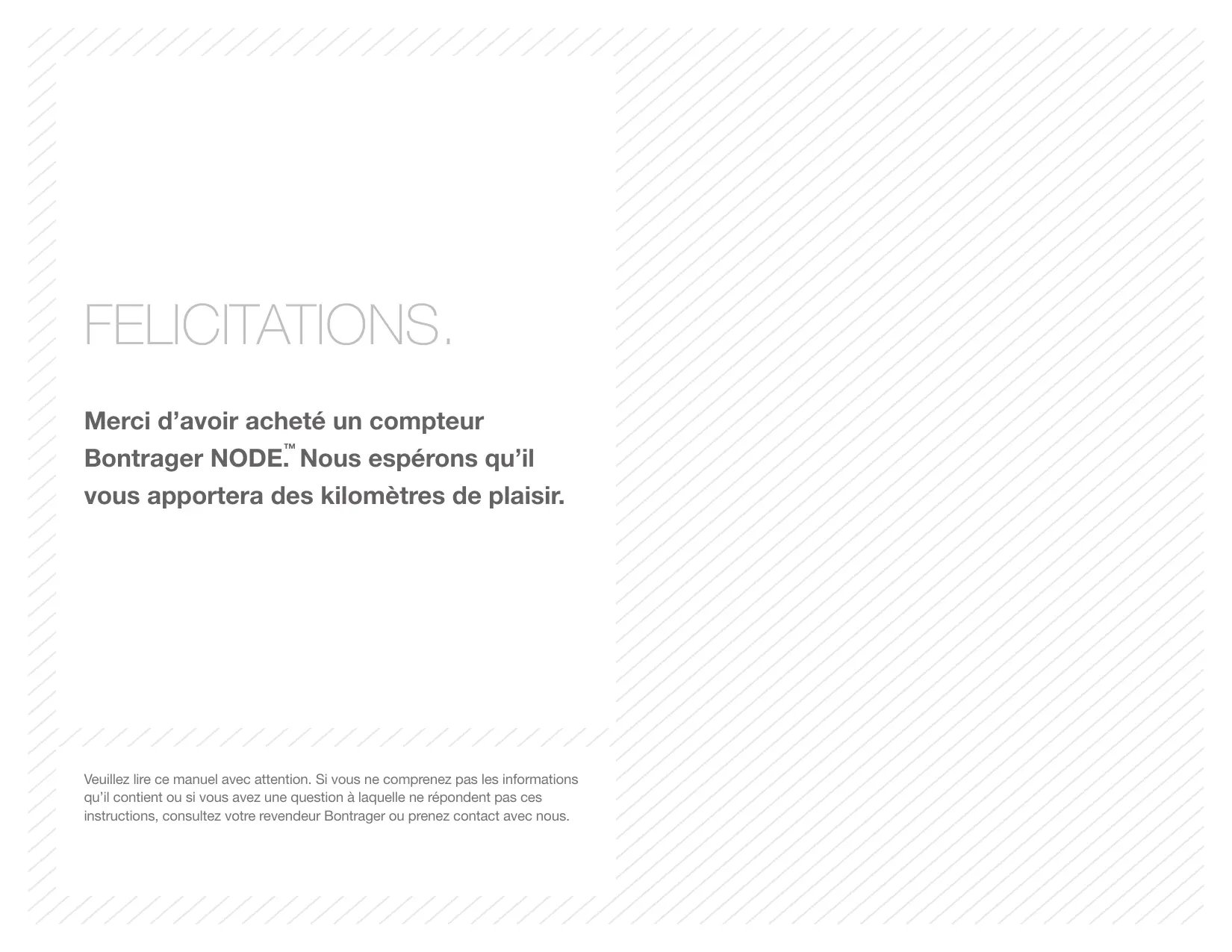 Merci d'avoir acheté un compteur Bontrager NODE. Nous espérons qu'il vous apportera des kilomètres de.Plaisir.