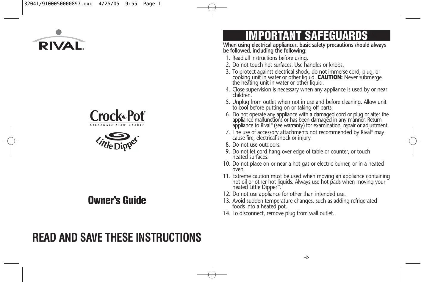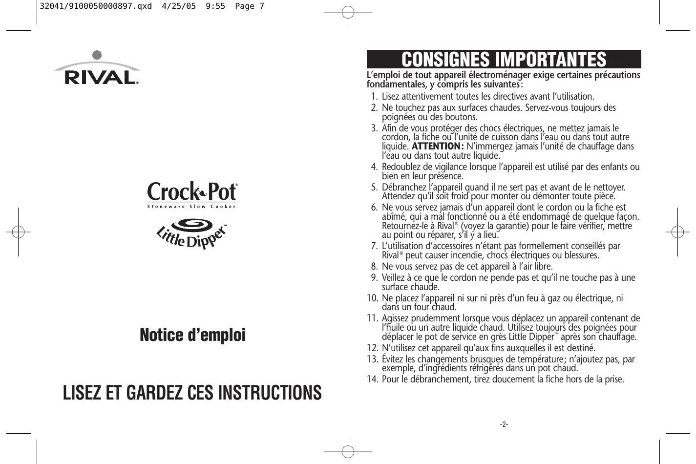 Retrouvez gratuitement la notice de l'appareil 32041 LITTLE DIPPER CROCK POT au format PDF.