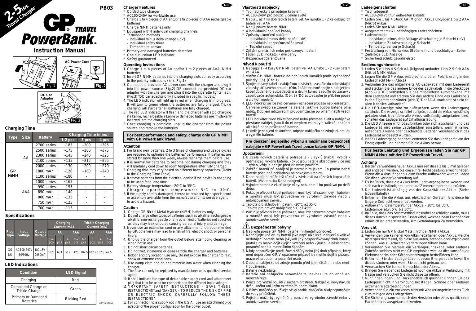 Retrouvez gratuitement la notice de l'appareil PB03 GP BATTERIES au format PDF.
