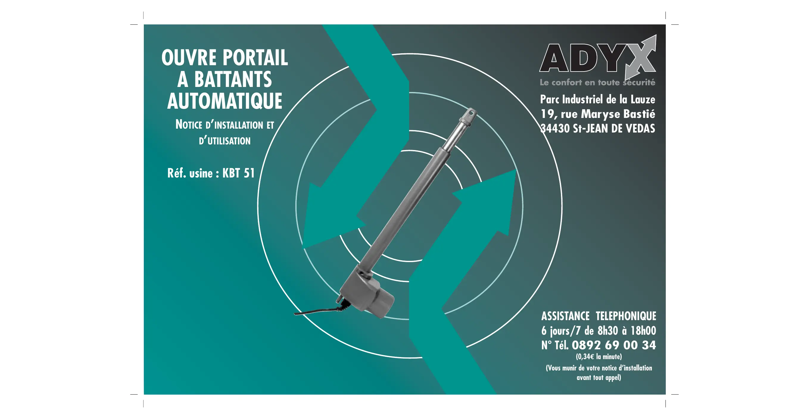 KBT 51 - Automatisme de portail ADYX - Notice d'utilisation et mode d'emploi gratuit