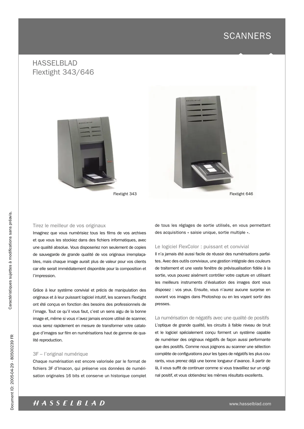 FLEXTIGHT 646 - Scanner à film HASSELBLAD - Notice d'utilisation et mode d'emploi gratuit