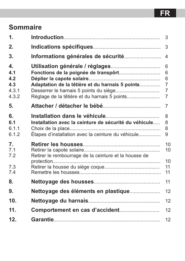 AVERTISSEMENT: Ne plus utiliser le transat dès lors que l'enfant peut se tenir assis tout seul. 5