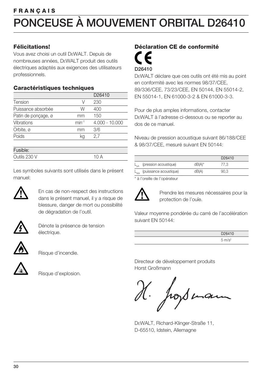 D26410 - Ponceuse DEWALT - Notice d'utilisation et mode d'emploi gratuit