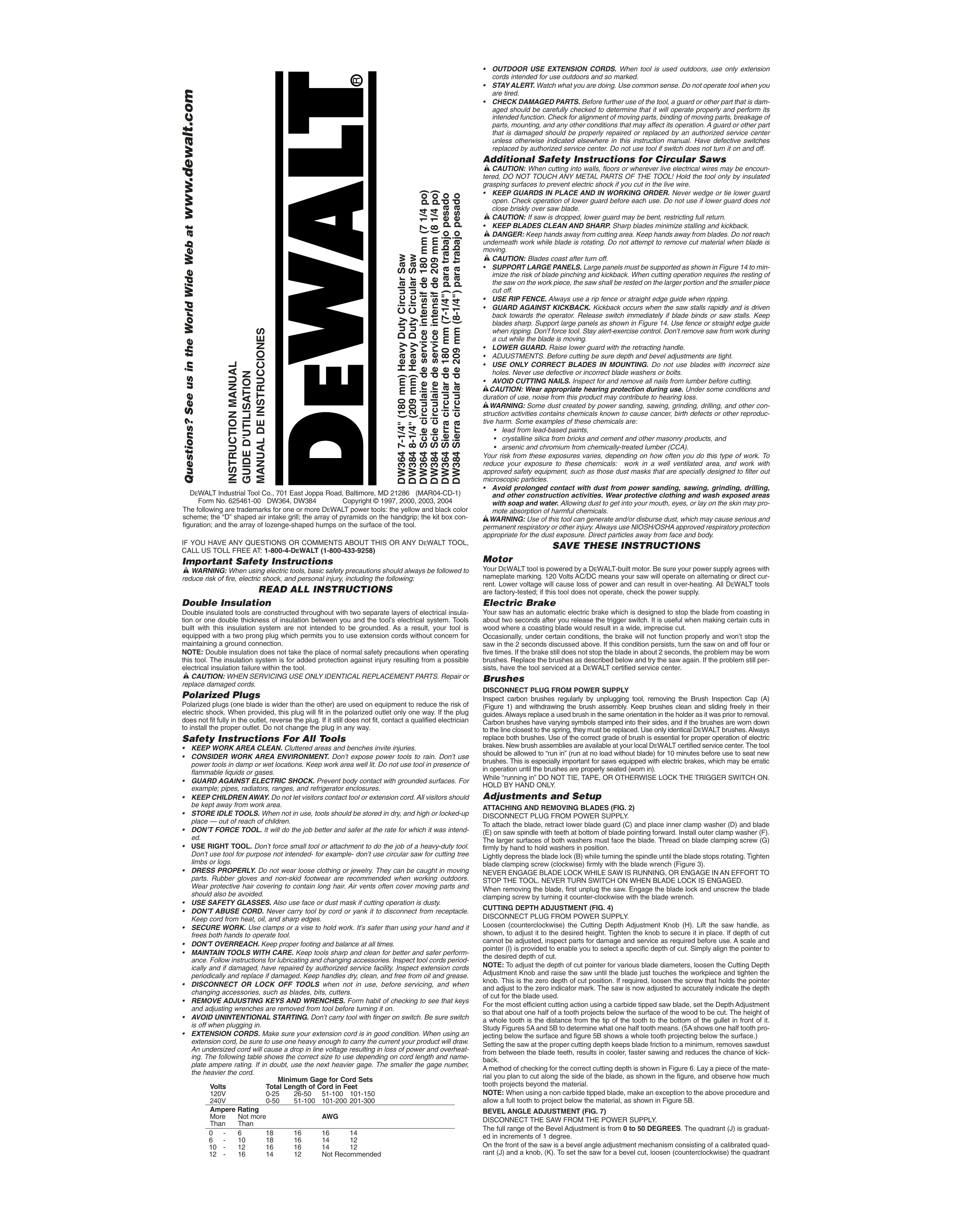 DW364K - Scie circulaire DEWALT - Notice d'utilisation et mode d'emploi gratuit