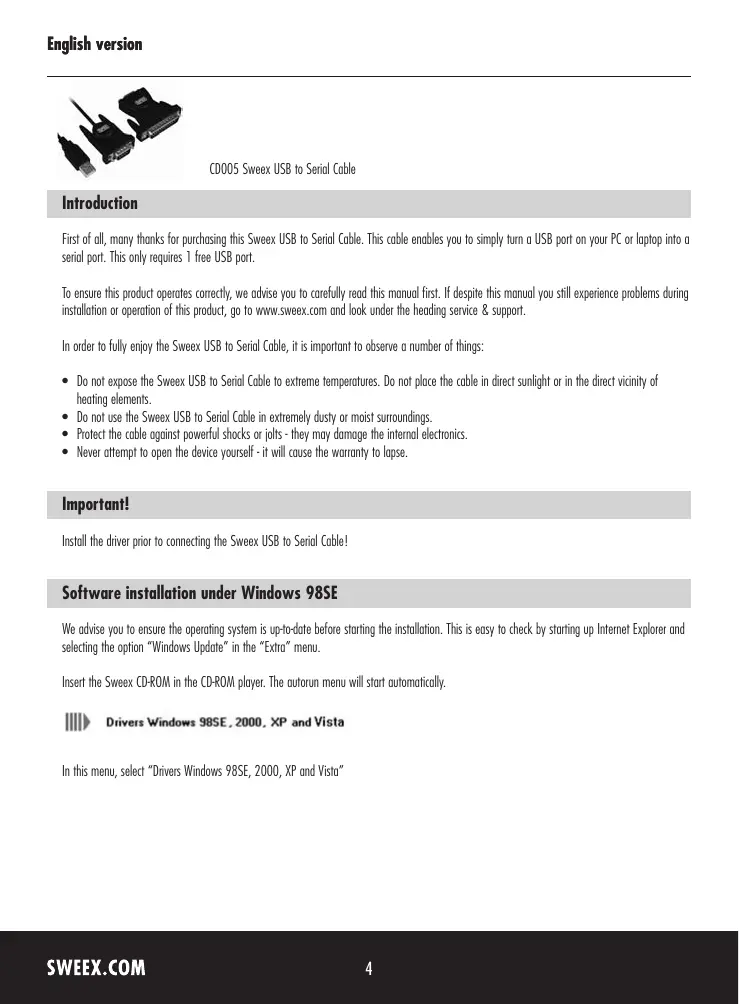 CD005 - Câble informatique SWEEX - Notice d'utilisation et mode d'emploi gratuit