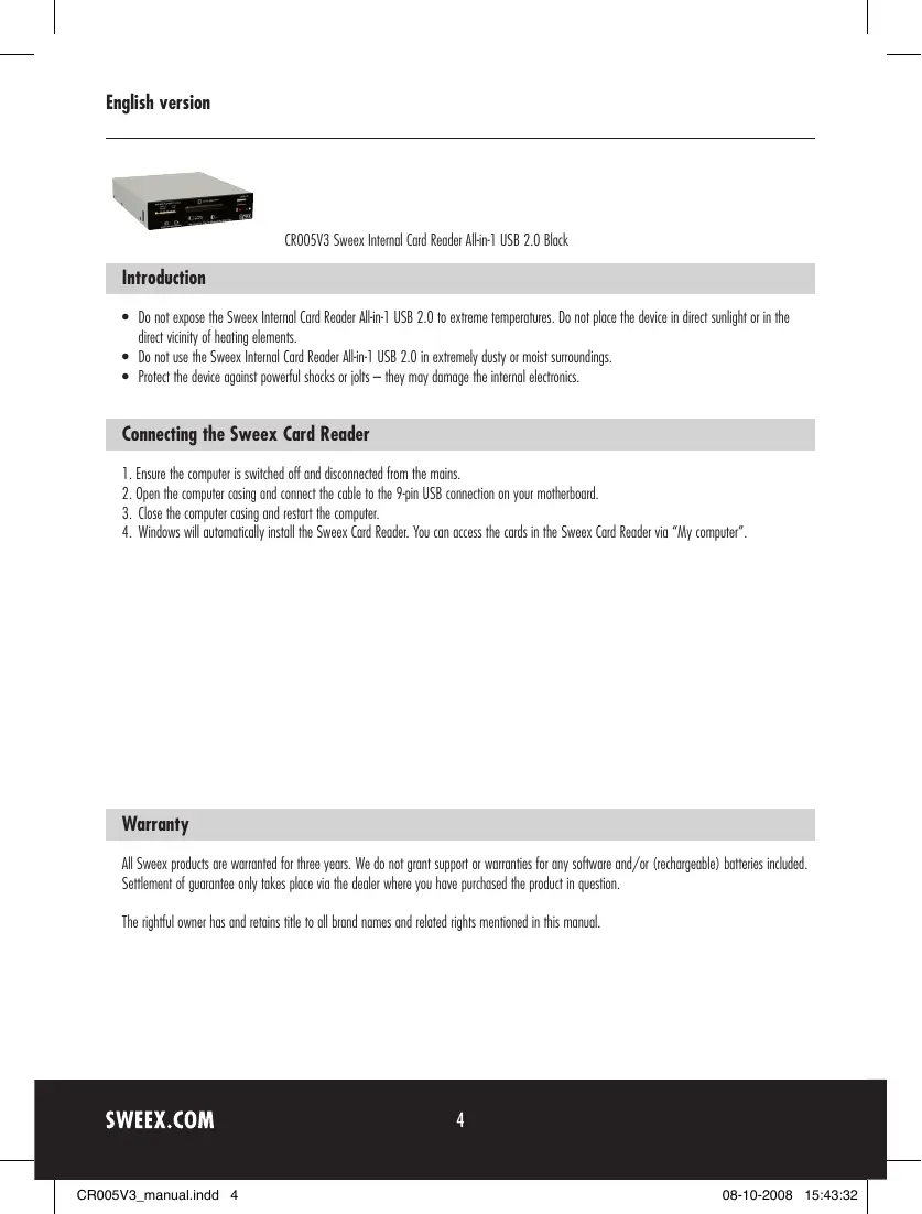 CR005V3 - Lecteur de cartes mémoire SWEEX - Notice d'utilisation et mode d'emploi gratuit