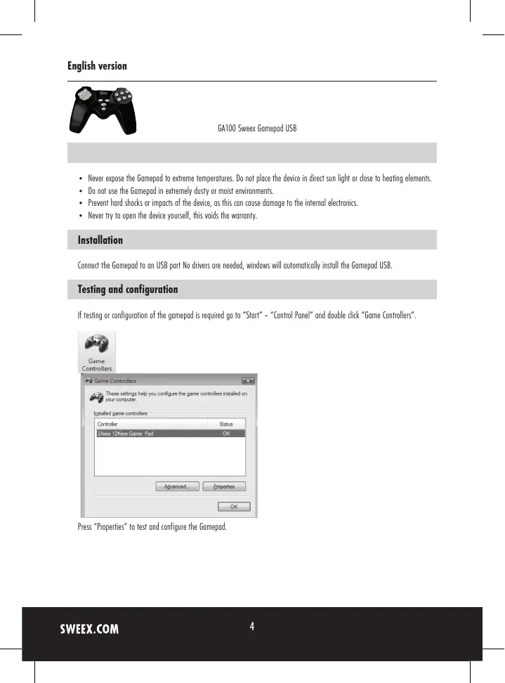 GA100 - Manette de jeu vidéo SWEEX - Notice d'utilisation et mode d'emploi gratuit
