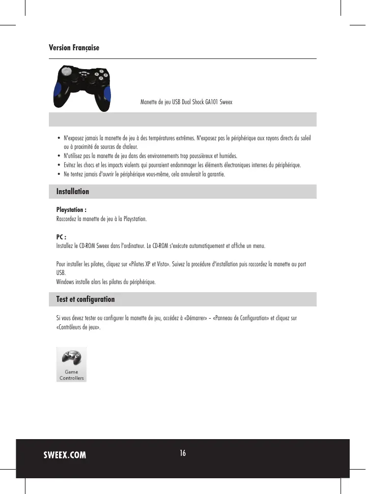 GA101 - Manette de jeu vidéo SWEEX - Notice d'utilisation et mode d'emploi gratuit