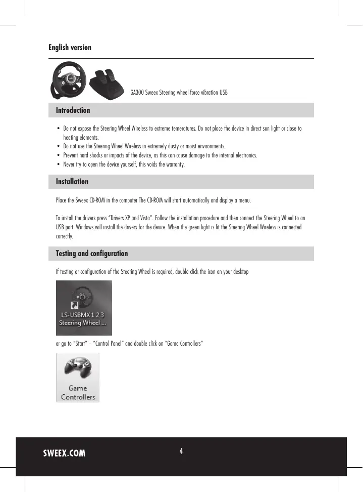 GA300 - Volant de jeu vidéo SWEEX - Notice d'utilisation et mode d'emploi gratuit