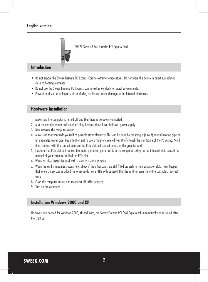 HM404 - Carte d'extension informatique SWEEX - Notice d'utilisation et mode d'emploi gratuit