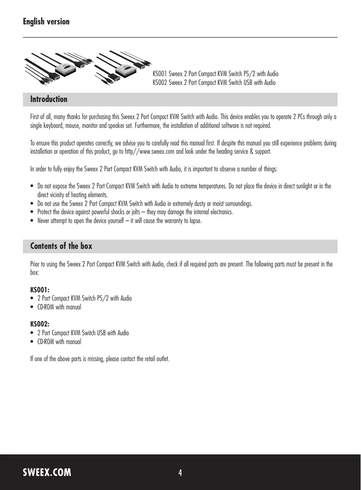 KS001 - Commutateur KVM SWEEX - Notice d'utilisation et mode d'emploi gratuit
