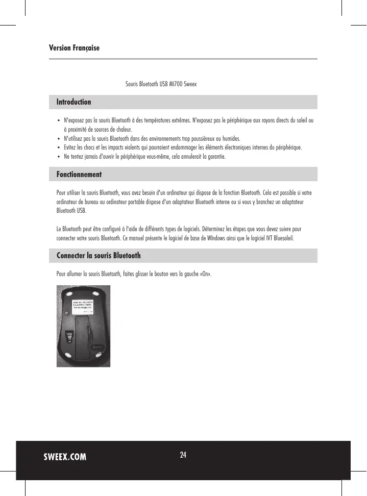 Version Française Souris Bluetooth USB MI700 Sweex Introduction