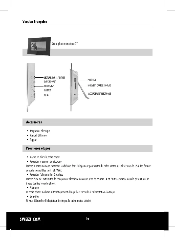 MM008V2 - Cadre photo numérique SWEEX - Notice d'utilisation et mode d'emploi gratuit
