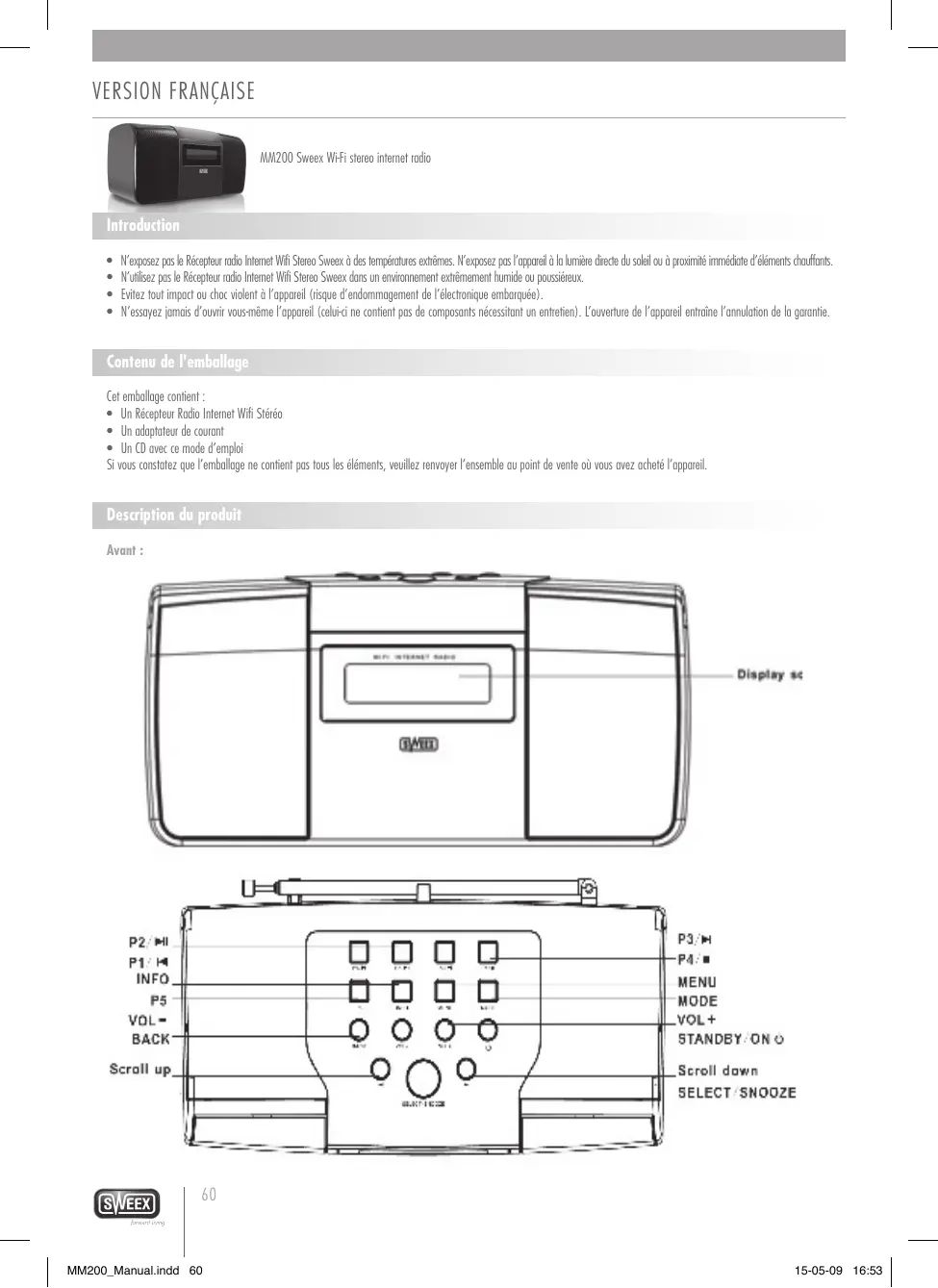MM200 - Radio SWEEX - Notice d'utilisation et mode d'emploi gratuit
