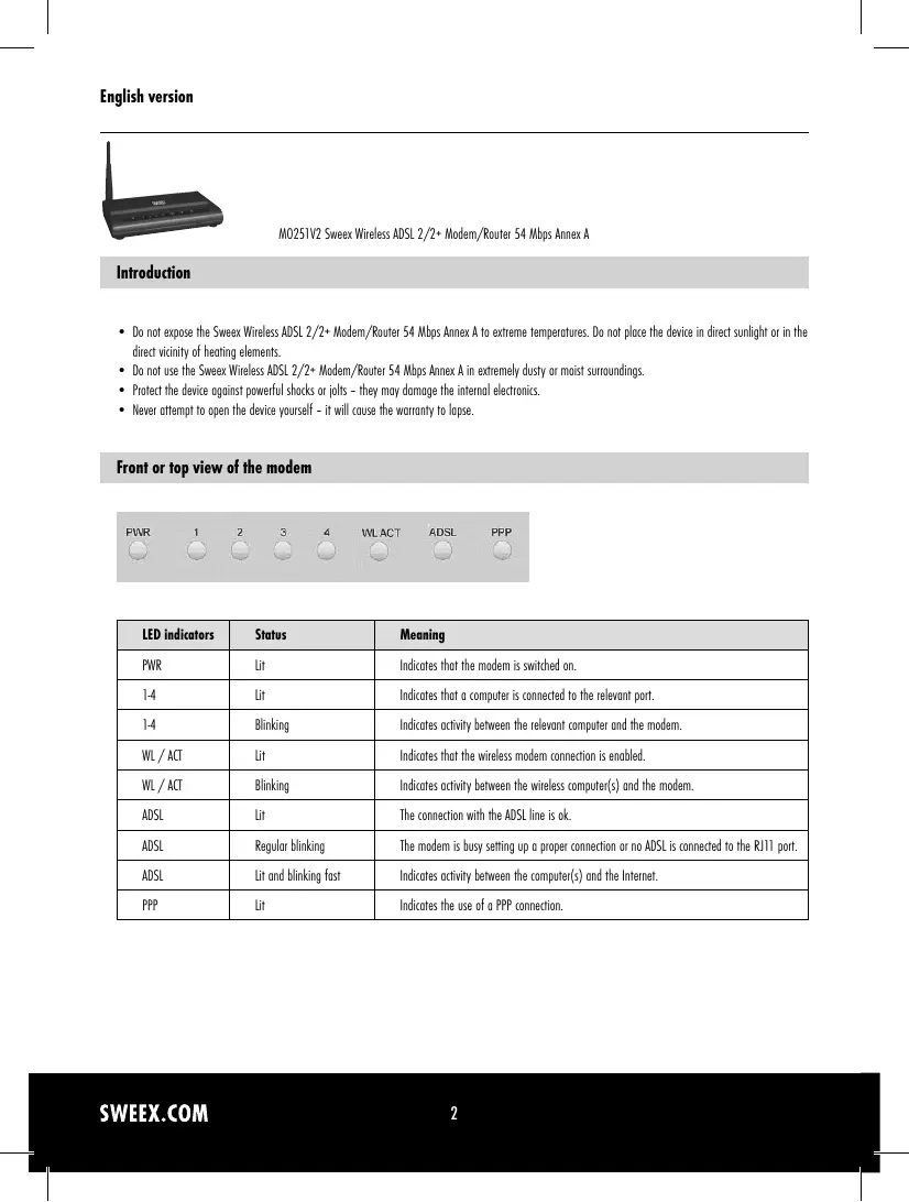 MO251V2 - Modem/Routeur SWEEX - Notice d'utilisation et mode d'emploi gratuit