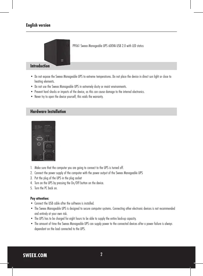 PP061 - Onduleur SWEEX - Notice d'utilisation et mode d'emploi gratuit