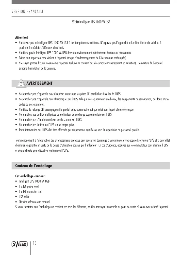 PP210 - Onduleur SWEEX - Notice d'utilisation et mode d'emploi gratuit