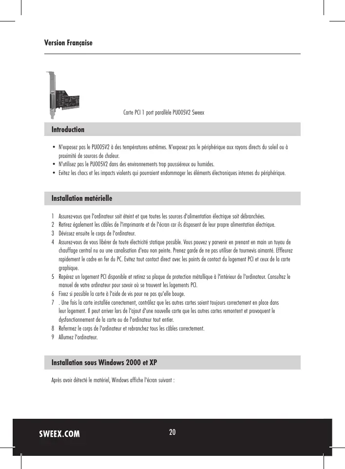 PU005V2 - Carte électronique SWEEX - Notice d'utilisation et mode d'emploi gratuit