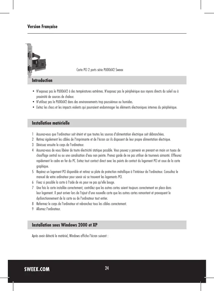 Carte PCI 2 ports série PU006V2 SweeX