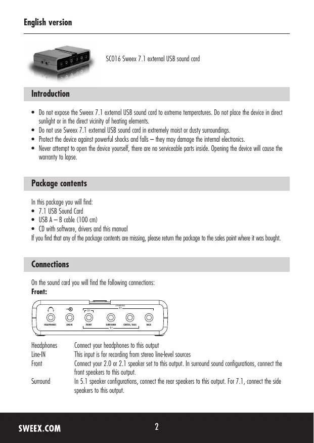 SC016 - Carte son SWEEX - Notice d'utilisation et mode d'emploi gratuit