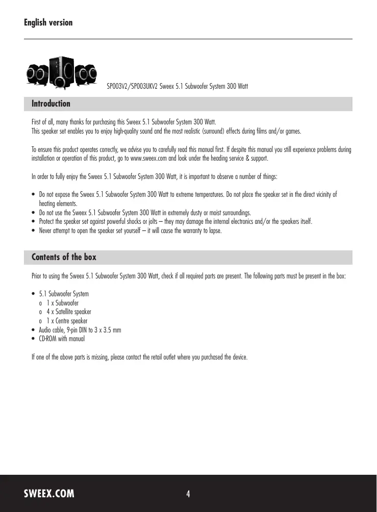 Retrouvez gratuitement la notice de l'appareil SP003V2 SWEEX au format PDF.