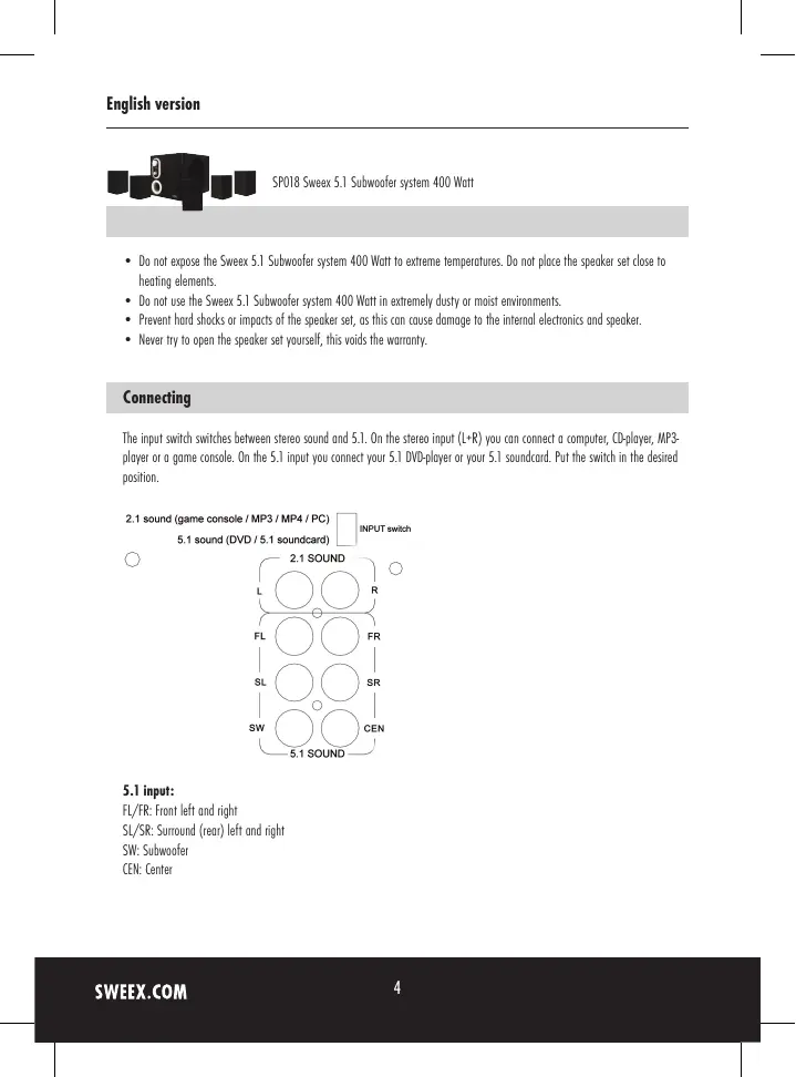 Retrouvez gratuitement la notice de l'appareil SP018 SWEEX au format PDF.