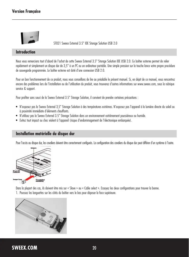 ST021V2 - Disque dur externe SWEEX - Notice d'utilisation et mode d'emploi gratuit
