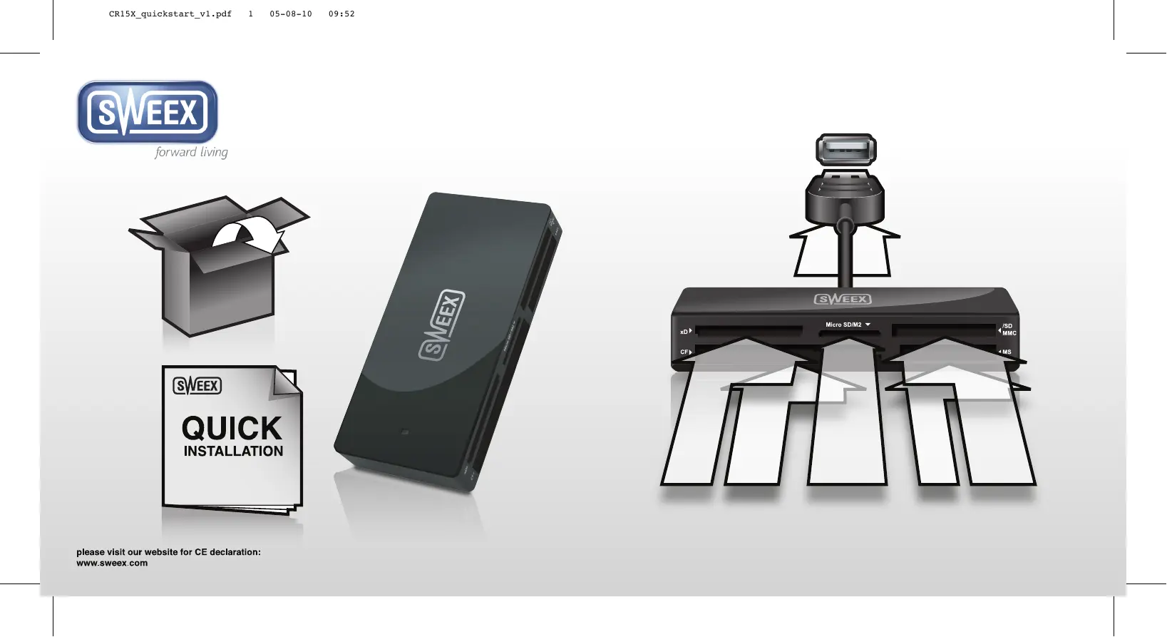 Pour connecter le SWEEX CR150, branchez le câble USB fourni dans le port USB de votre ordinateur. L'appareil devrait être détecté automatiquement.