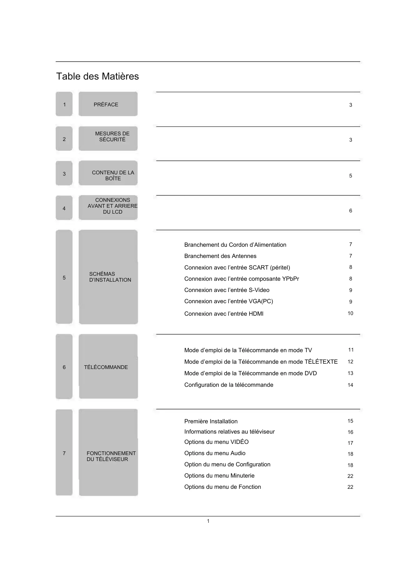 1 . PRÉFACE Nous vous remercions d’avoir acheté ce téléviseur ! Veuillez lire ce manuel entièrement avant de mettre le téléviseur en marche. Assurez-vous que le téléviseur n’ait pas été endommagé pendant le transport. Dans le cas où le téléviseur serait endommagé, ne l’installez pas et contactez votre revendeur. Vérifiez que vous ayez tous les accessoires selon le modèle.