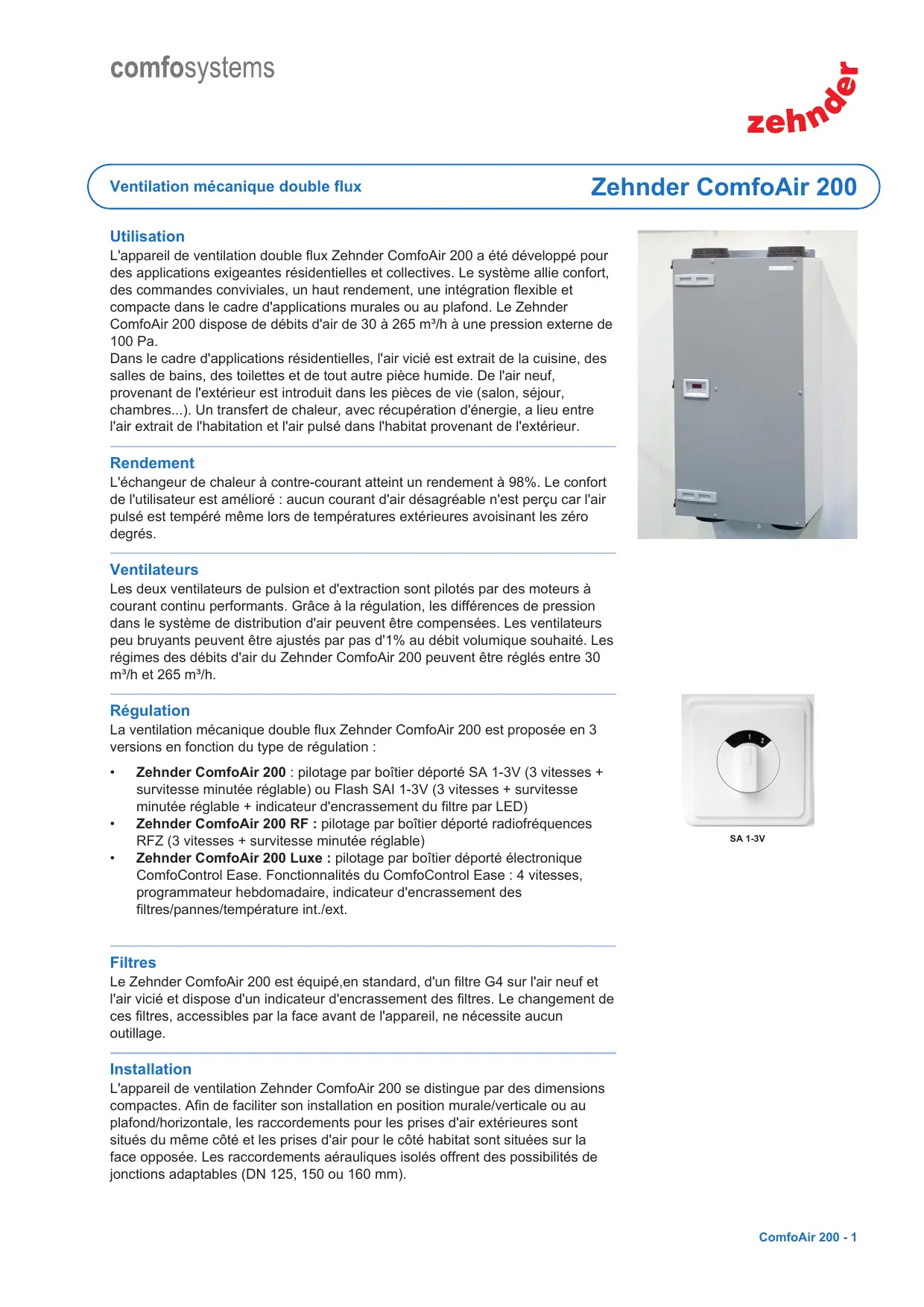 Retrouvez gratuitement la notice de l'appareil COMFOAIR 200 ZEHNDER au format PDF.
