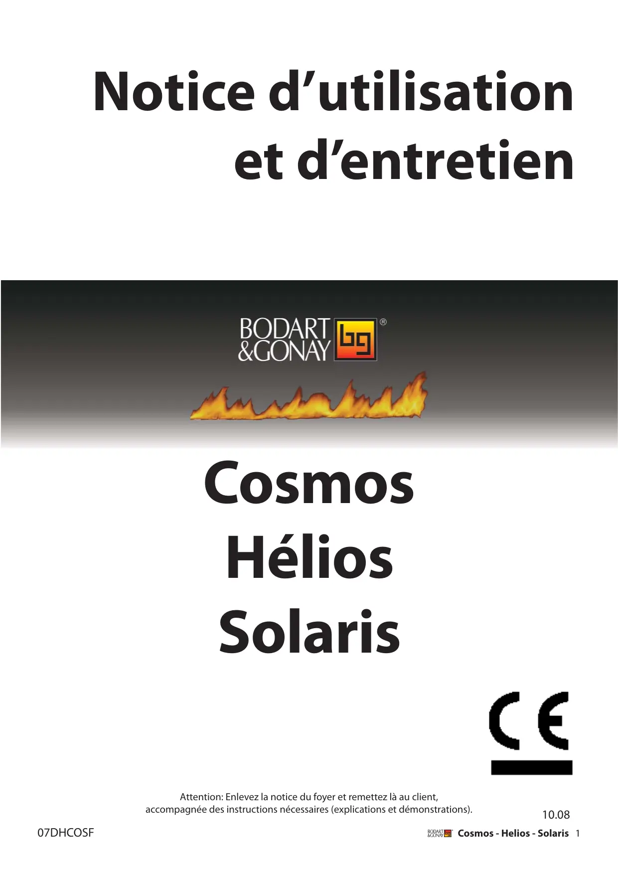 Attention: Enlevez la notice du foyer et remettez la au client, accompagnée des instructions nécessaires (explications et démonstrations).
