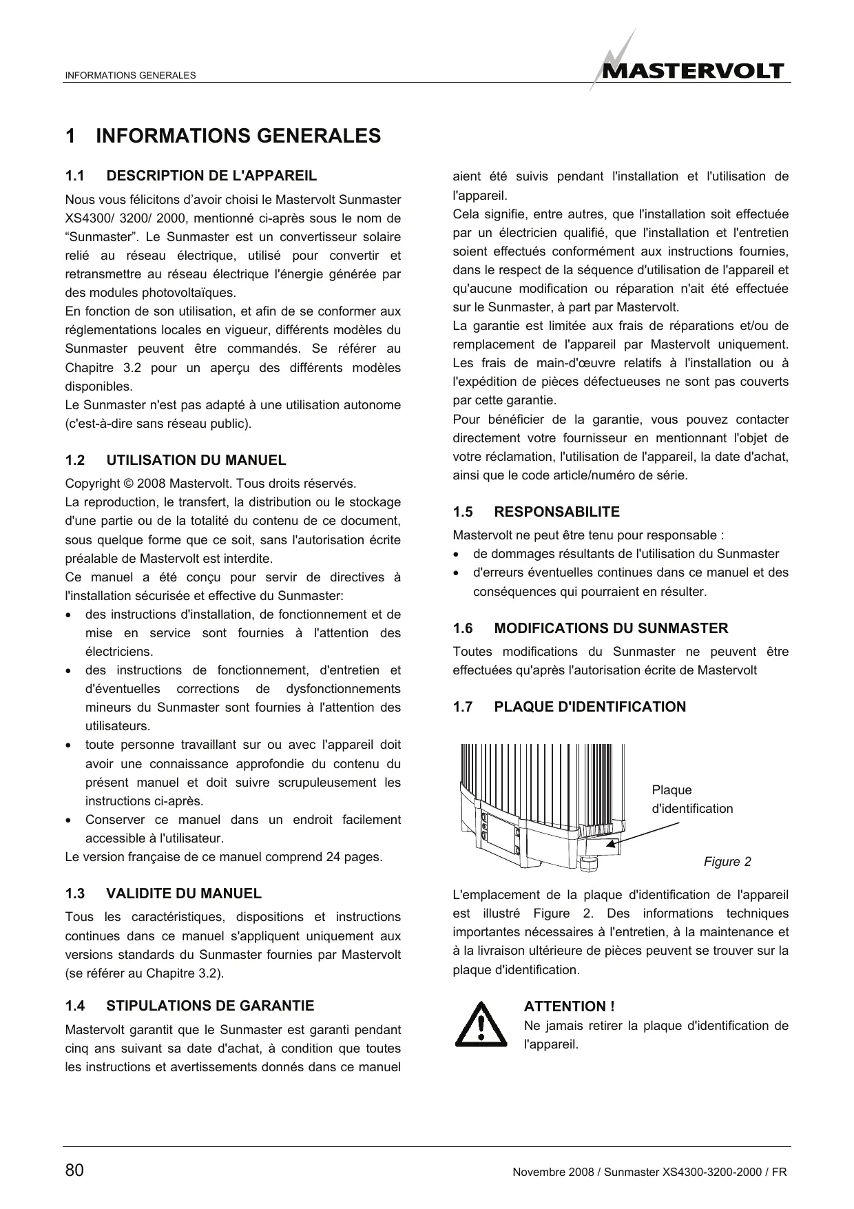 1.7 Plaque d'identification 80
