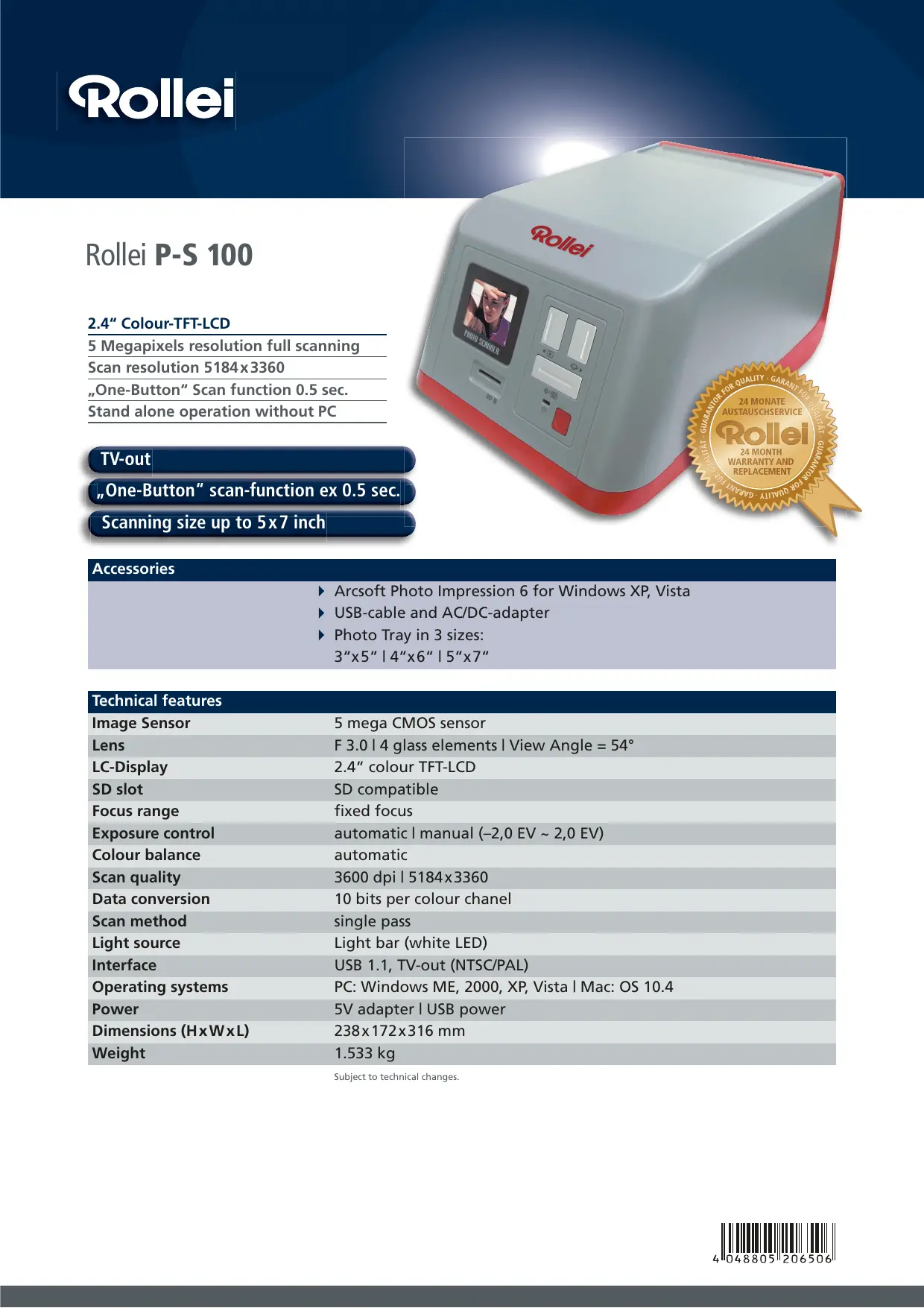 P-S 100 - ROLLEI - Notice d'utilisation et mode d'emploi gratuit