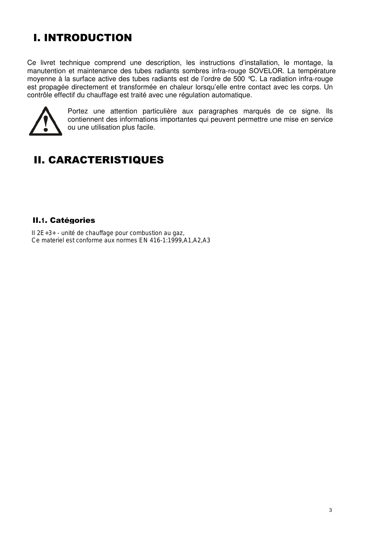 II.2. Unité de chauffage pour combustion au gaz, Ce matériel est conforme aux normes EN 416-1:1999, A1, A2, A3