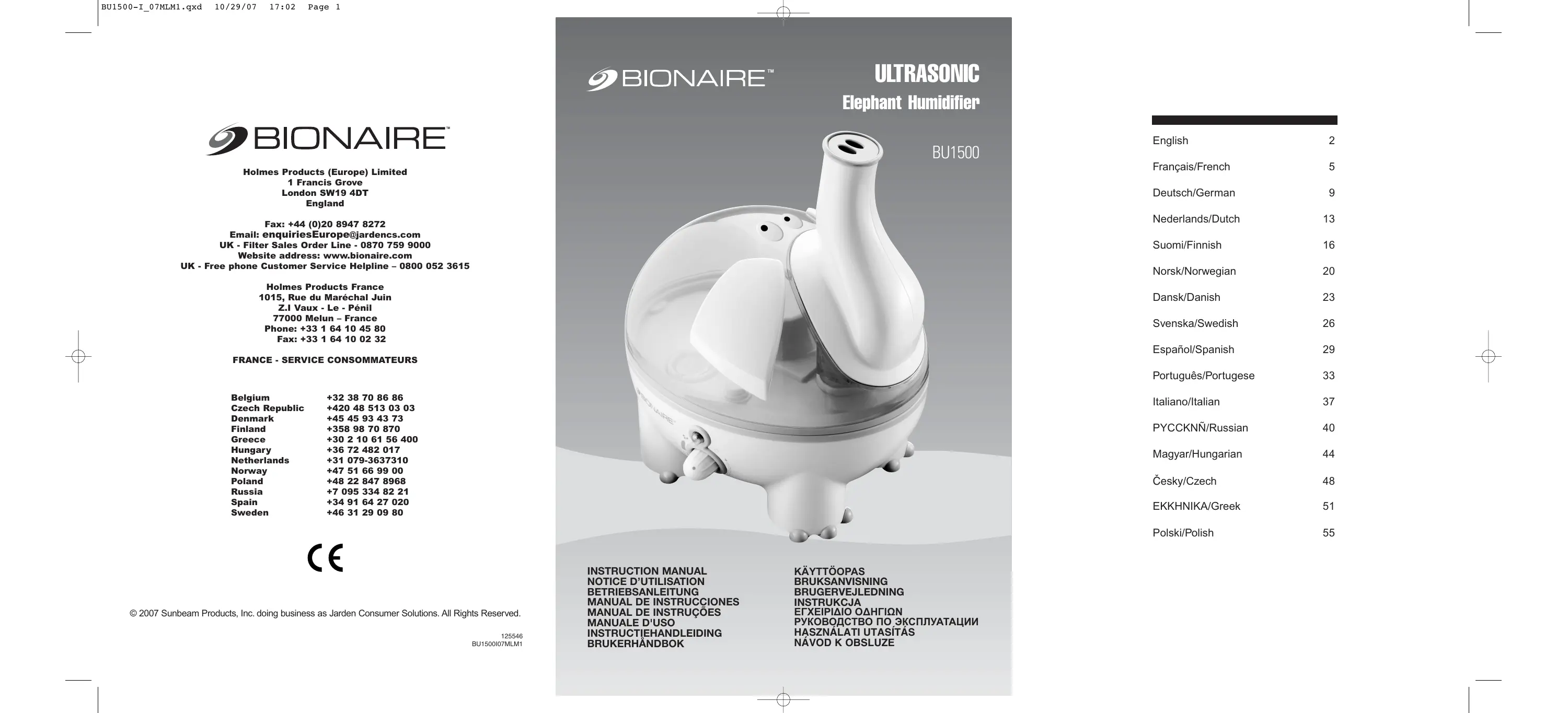 www.bionaire.com ou par email à enquiriesEurope@jardencs.com nel